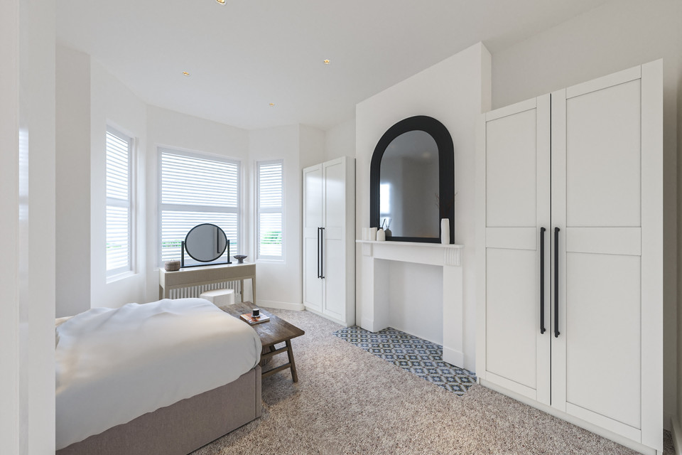 Sliding doors at the back of the property from your main reception/kitchen/dining room (a deftly-done extension to the property’s original footprint) provide direct access to your own private west-facing garden. With its twist of south, it’s a great suntap for late morning through to late afternoon sun. A new lease of 125 years completes the offering.
