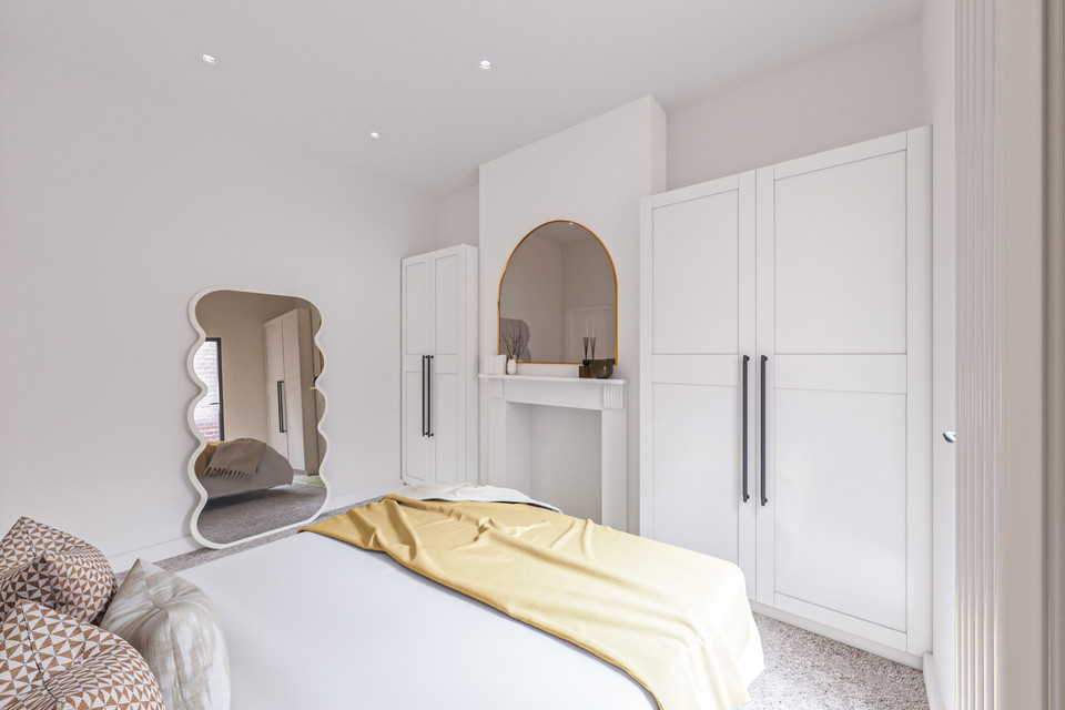 From the communal hall your own front door is set to your left. On your immediate left on entry is the large principal bedroom, with a pleasing bay window. Adjacent is a second generous bedroom. This has a glazed door to a cute courtyard.