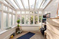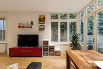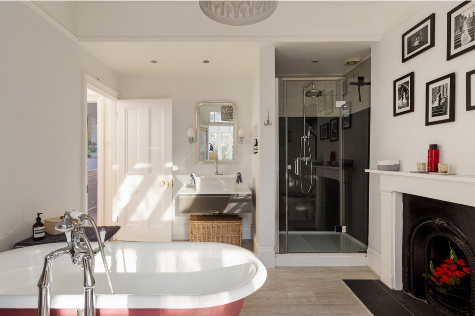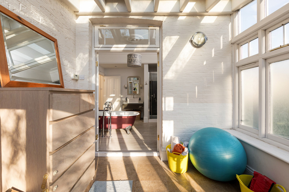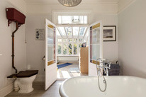 From the landing proper you have a luxury oversized bathroom with feature fireplace, free-standing roll-top bath, Victorian-style (but modern cistern!) toilet and an independent shower. French doors open to another conservatory-style room with garden views, which lends itself well to a home gym/pamper space/reading room. You choose!