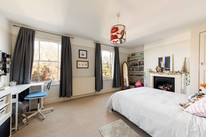 The huge master bedroom, of 17 feet by 11 feet, rests to the front of the house, with a duo of sash windows. period fireplace (also present in all the other double bedrooms), coving and rose detail here.