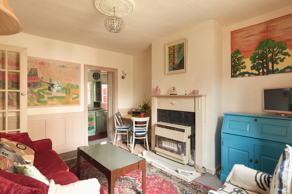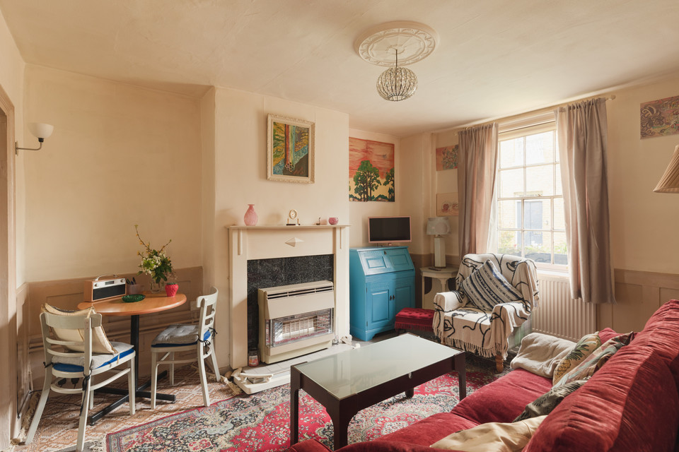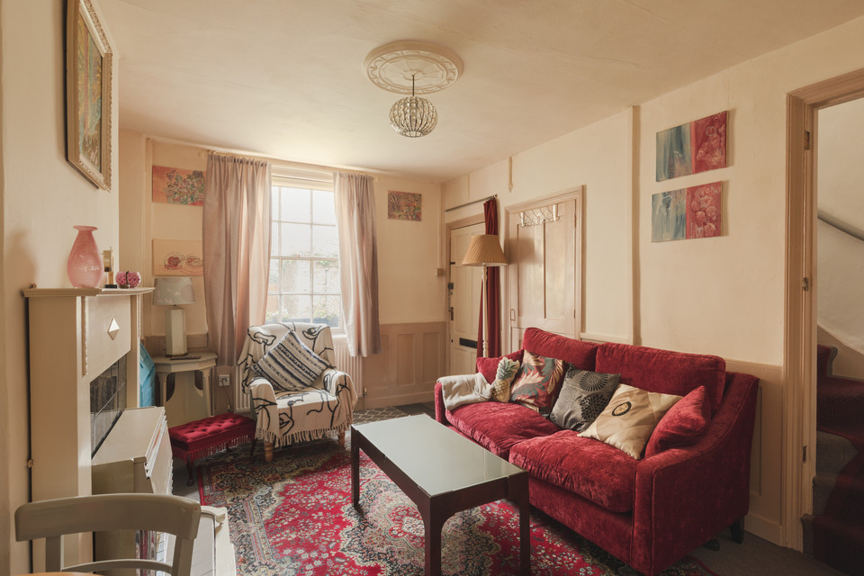 You share a main front door and entrance lobby with one neighbouring almshouse. Your front door is to your right. You open directly into your sash-windowed reception room, which is over 13 feet by nearly 11 feet. On through here and you have a cute kitchen and beyond this a lean-to/storage area with a (brick-built) downstairs w.c. A back door here opens to a small back yard.