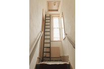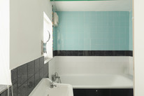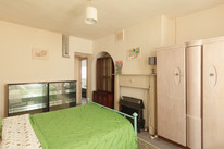 Upstairs you have your double bedroom above the reception, with a built-in closet to one corner. From here is a little lobby space then your bathroom, with white suite.