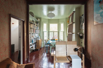 From your hall you have your traditional double-reception to your left, with big bay window to the front (custom-made privacy shutters to the lower panes here). The whole room runs over 23 feet. Set up dining and living spaces as you desire.