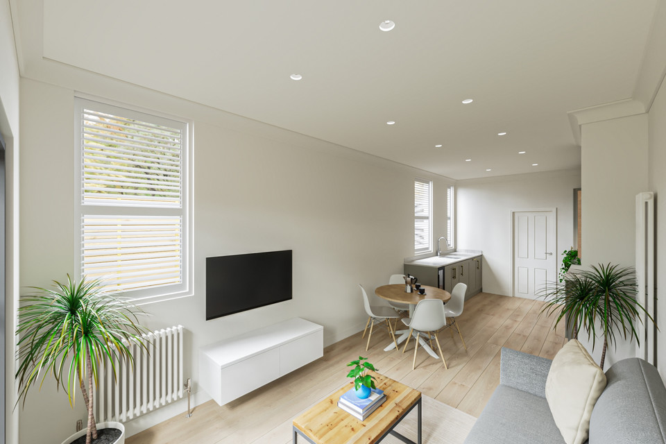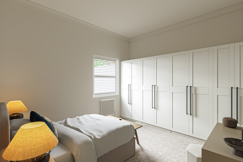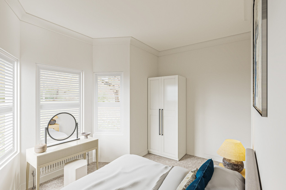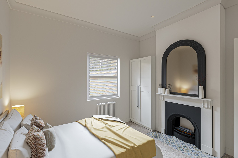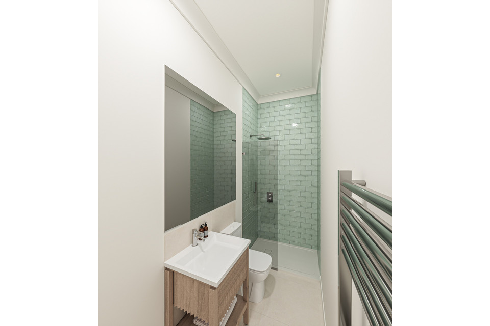 There is a shared main door and hall then your own front door is on your right. The property’s sleek internal shower room is ahead. A right turn at the door will take you to the first of your bedrooms, which has a big bay window.