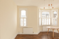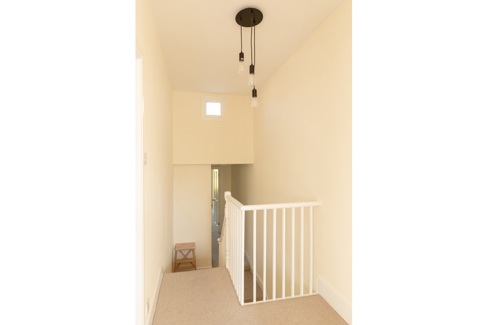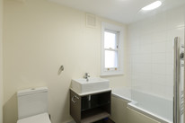 There is just one flat below yours and you share a main front door and entrance hall. Your own front door is straight ahead. Take your stairs here and from the half-landing area your sash-windowed bathroom is on your left. This has modern white sanitaryware and an over-bath shower.