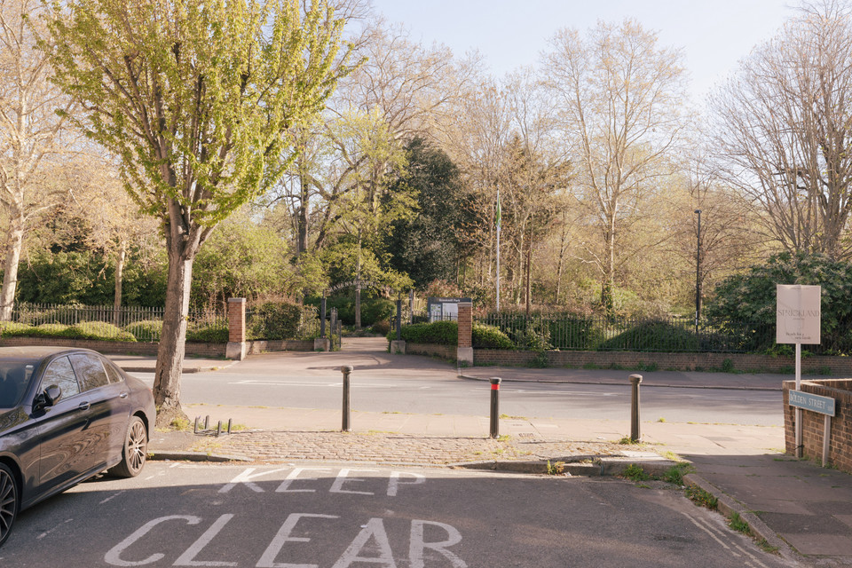 The street is a tree-lined no-through road with old-fashioned street lamps: a quaint and quiet location to set your hat.