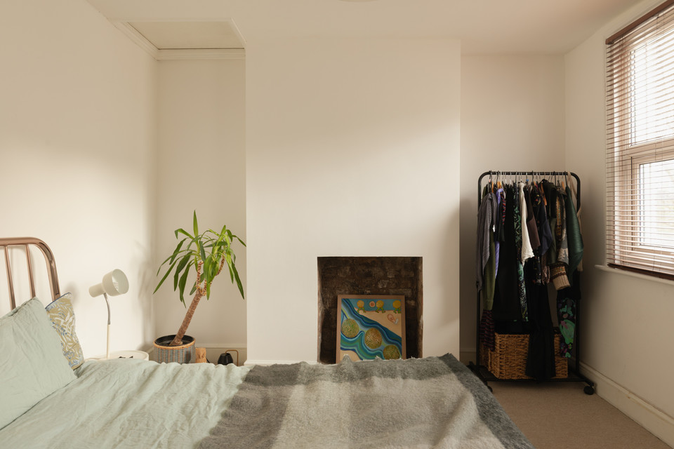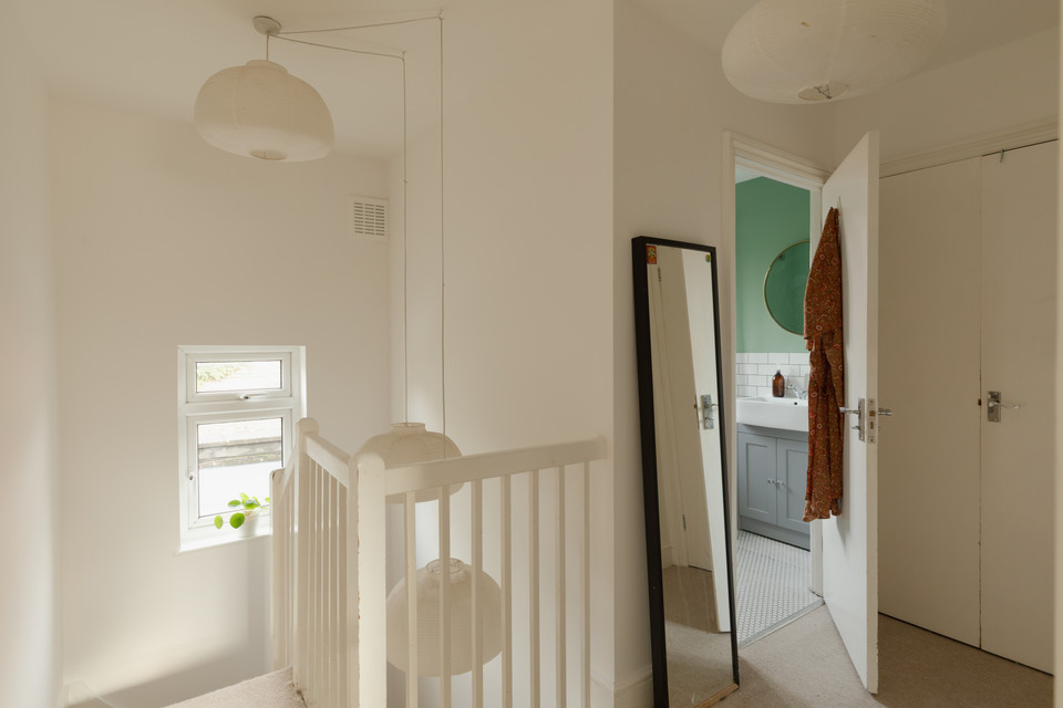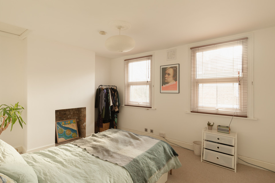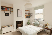 Your principal twin-windowed bedroom is set to the front of the house. This is over 10 feet by nearly 14 feet, and (as downstairs) has an opened-up fireplace as a central feature.