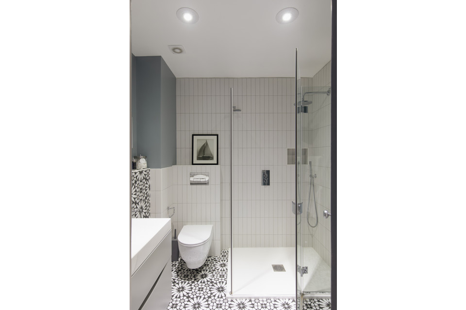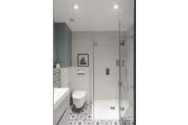 Back to the entrance hall/lobby and a luxury shower room is next up. This has modern fixtures and fittings (including a separate shower spray), concealed plumbing, smart wall and floor tiling, recessed lighting and under-basin storage drawers.