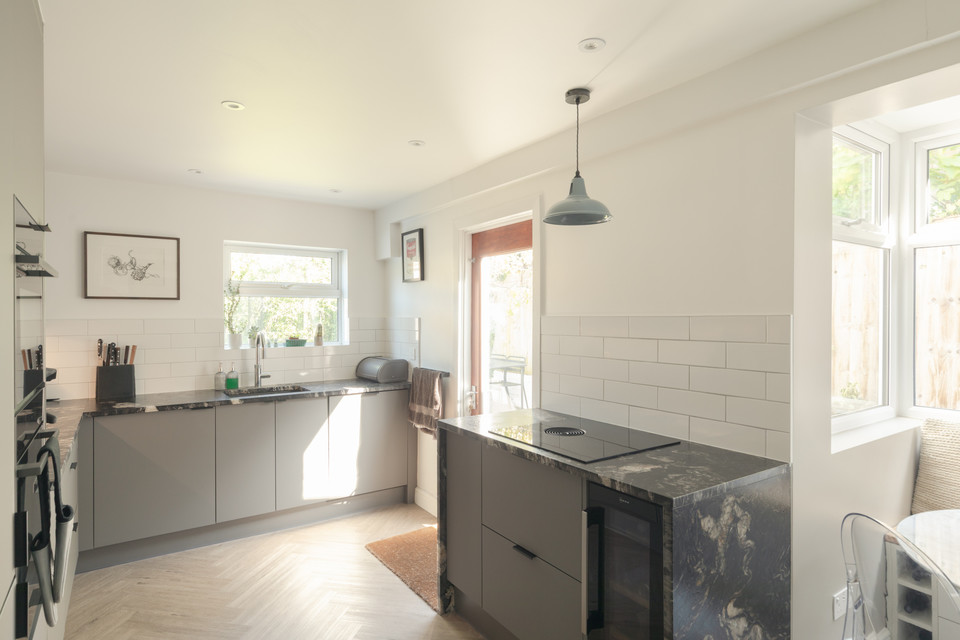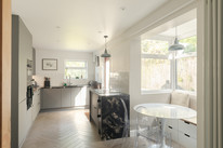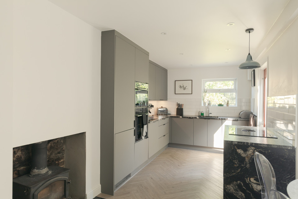 At the foot of the hall, take a left down to the generous cellar (a roomy 352 square feet, with light and power, currently part-used as an office). Next is a downstairs cloakroom with utility cupboard opposite, then it is straight ahead for the generous double-aspect kitchen/diner - which stretches over 22 feet, and has an eco woodburner (very lovely in the winter) which is certified for use in smoke controlled areas. There is a newly fitted condensing boiler (10yr warranty) and electric underfloor heating to boot. Your smart fitted kitchen was refurbished in 2024. Treats include granite worktops, a pair of Neff ovens, a Bora hob, a separate wine fridge and a Quooker tap.