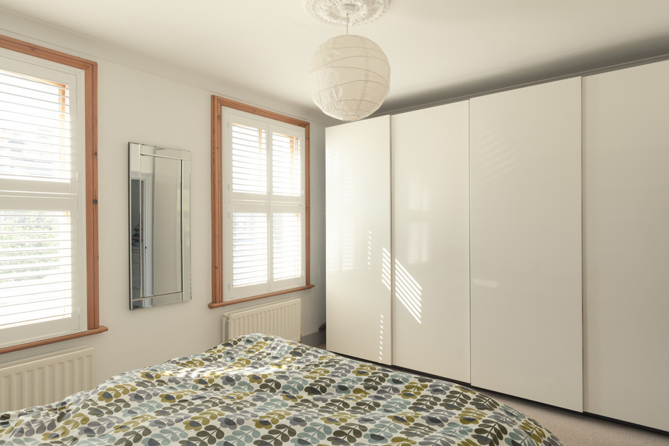 From the landing proper, turn left to another double of over 9 feet by 11 feet. Taking the front of the building, find your principal bedroom - of over 15 feet by over 11 feet, with pleasing custom-made window shutters once again.