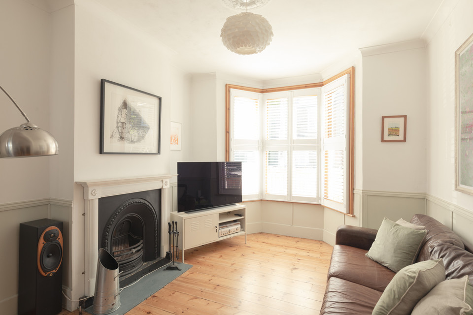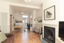 A neat front garden fronts the house (with green-roofed Brighton Bike Shed, also incorporating bin storage). In your front door - noting original wooden floors (recently professionally restored) - and you have got a formal through-reception to your right, stretching 25 feet. A working fireplace features in the front room and you have custom-made shutters to the bay window. Painted timber-framed glazed French doors lead from the second reception to the wide side return area of the garden.