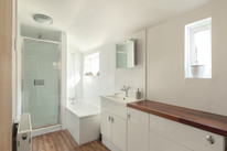 Up the stairs and from the half-landing and you have the property’s modern and windowed bathroom to your right - with independent shower too, and the first of your double bedrooms (to garden views).