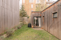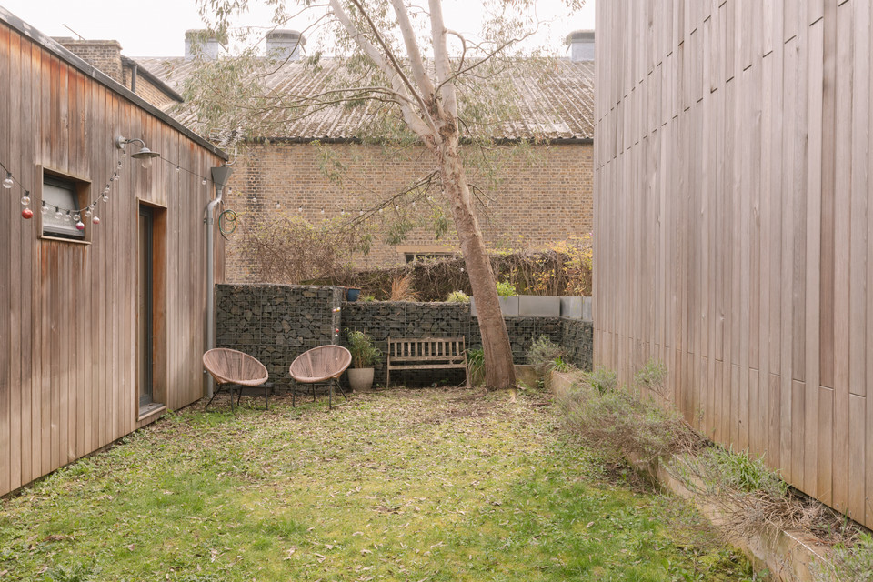 Very cool cedar-clad single storey modern mews house of 914 square feet, with two double bedrooms, two bathrooms, a huge open-plan kitchen/reception, and a generous and very private garden. Chain free.