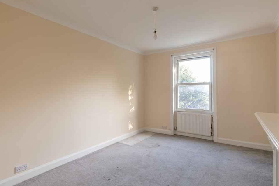 From the communal hall and stairwell, find your own front door on the first floor. You open into a larger than average hall. Both (carpeted) bedrooms are set at the rear of the property. The principal is 14 feet by over 11 feet; the respectable second is over 12 feet by nearly 10. Both face west so get great afternoon light.