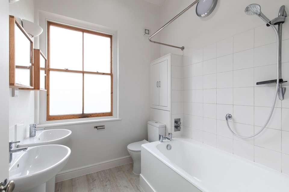 Upstairs, you will find two carefully-considered bedrooms (of over 15 feet by 9, and over 8 feet by over 7), and the property’s bathroom, which has a white suite, twin basins, and a shower over the bath.