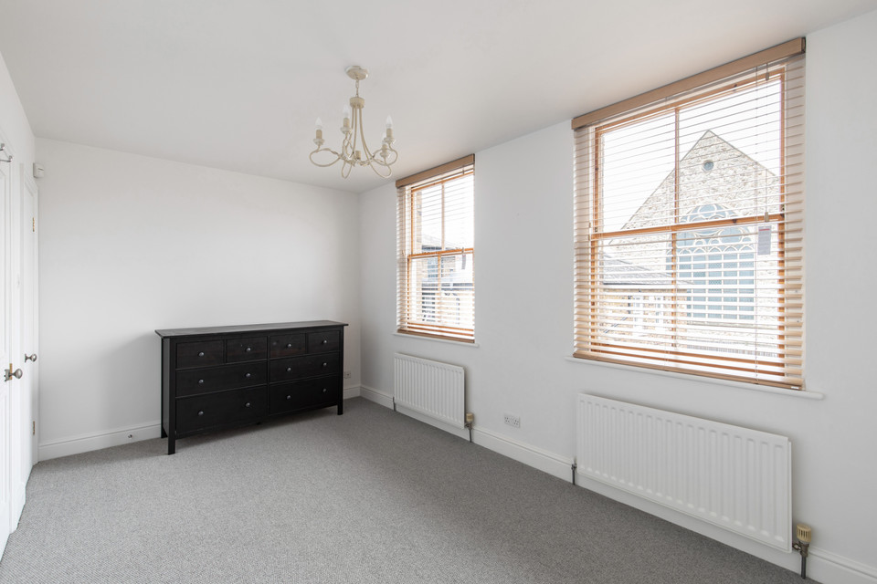Up again to the master bedroom. This is 15 feet long, with lots of windows, and pretty churchy views.