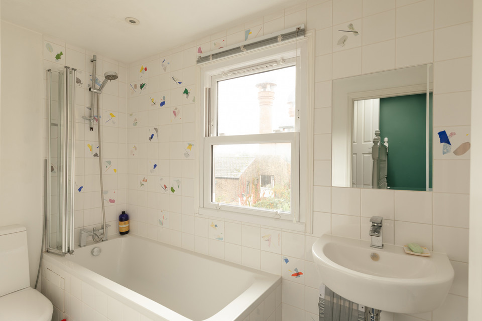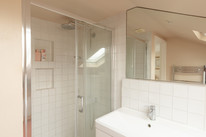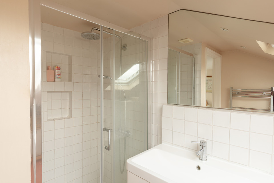 Following the stairs up you’ll next find the main (and windowed) bathroom with contemporary sanitaryware and over bath shower. The stairwell is cleverly lit by skylight - a nice touch.