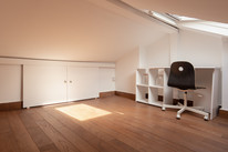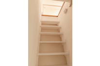 Up again for the loft space, which can be used as an office or even a sleeping space. It is a useful and flexible bonus area, with skylight window. Please note there is restricted head height. Accessible eaves storage completes the tour.