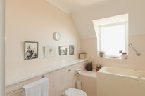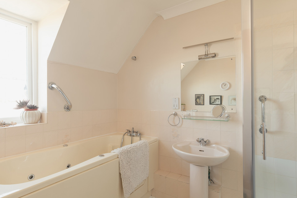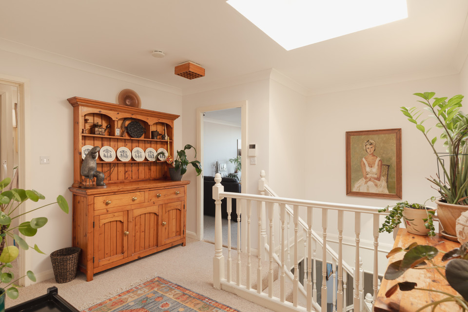 A guest w.c. is next door, and your eat-in kitchen rests off the sizeable landing. The kitchen is lit by a pair of roof lights.