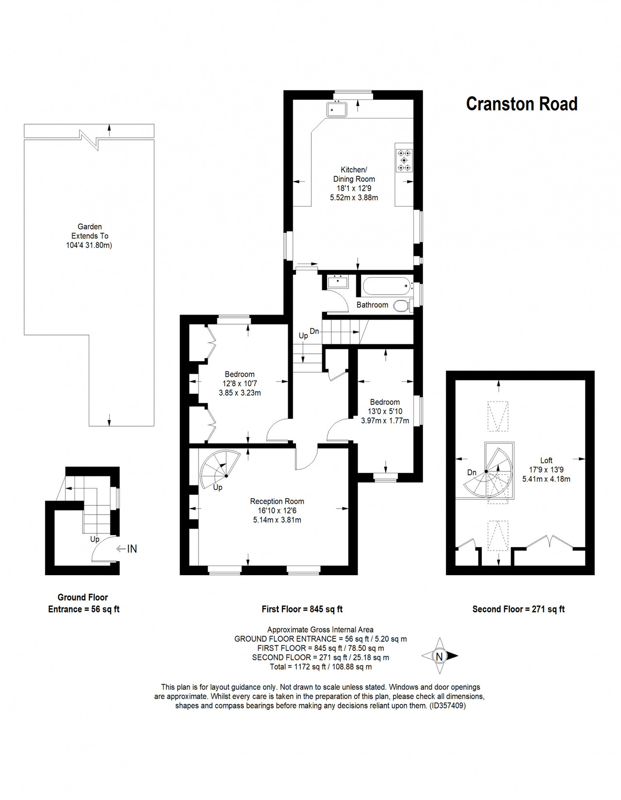 Your new home takes the whole upper section of a smart Victorian end of terrace. There is just one property below yours. Your own front door is to the right hand side of the building, where you’ll also find the gate to your sunny garden (which has patio and lawn sections).