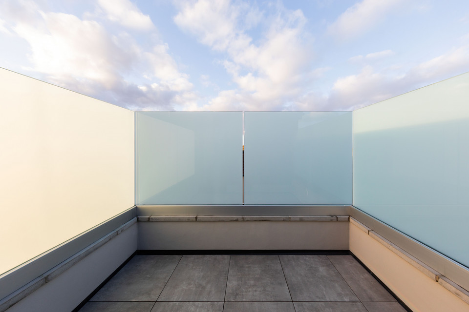 Immediately to your right is your terrace, of 2.7 metres by 2.5. Privacy (glazed) screening is a welcome feature.