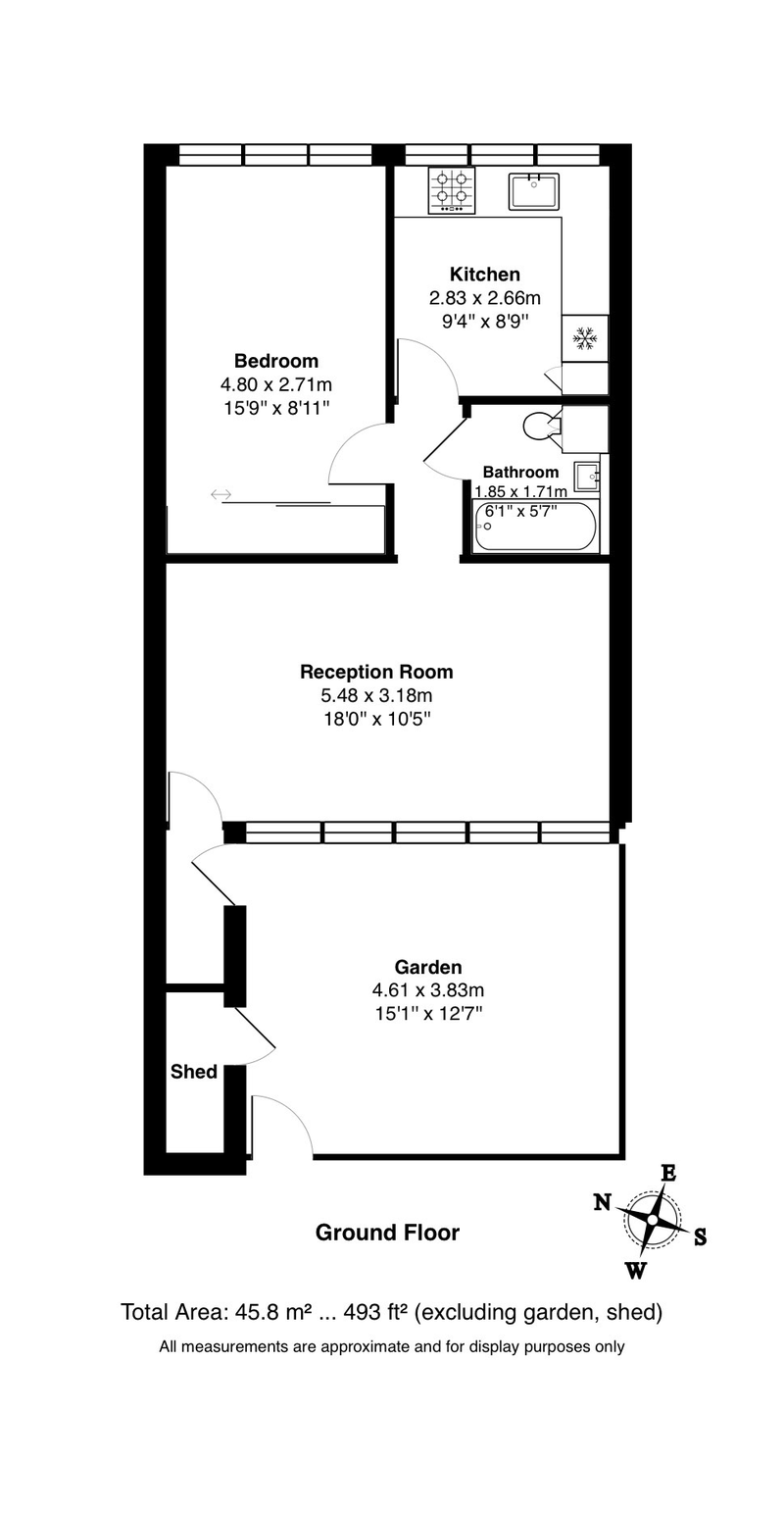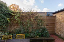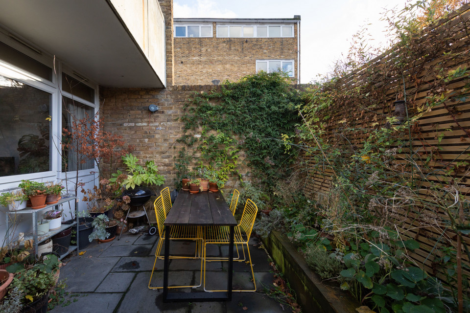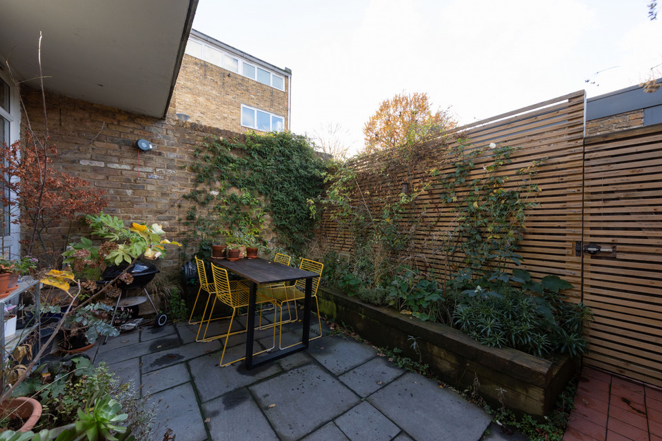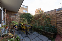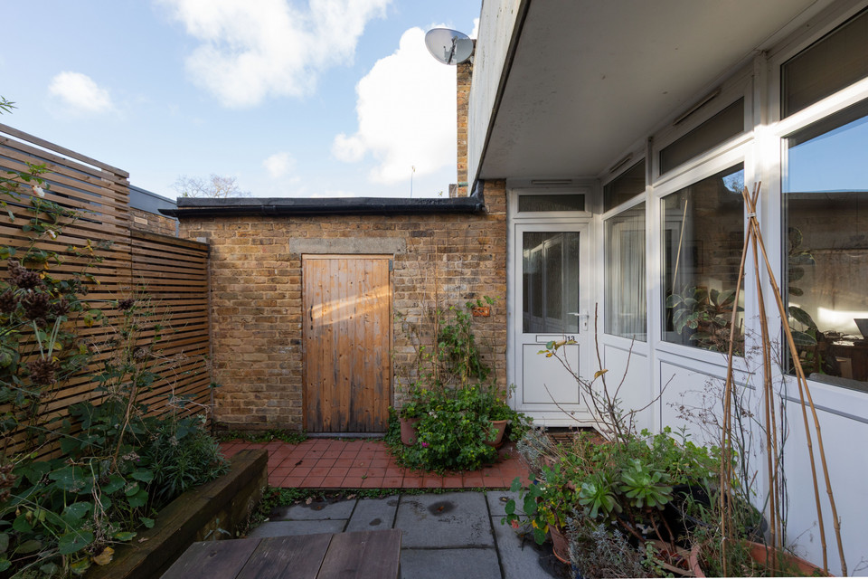 Delightful one bedroom ground floor purpose-built ex-LA flat of 493 square feet, with a private courtyard garden plus a large and secure brick-built shed.