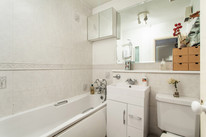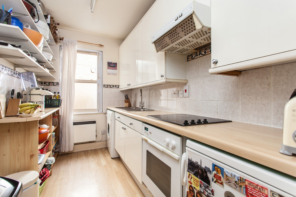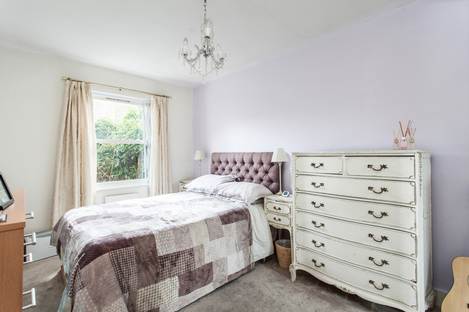 Your bedroom is next door (accessed from the hall) and is a very respectable 15 feet by 9 feet, complete with huge built-in wardrobe. A large window looks out to garden views. Your reception and bedroom are particularly bright owing to their southerly aspect.