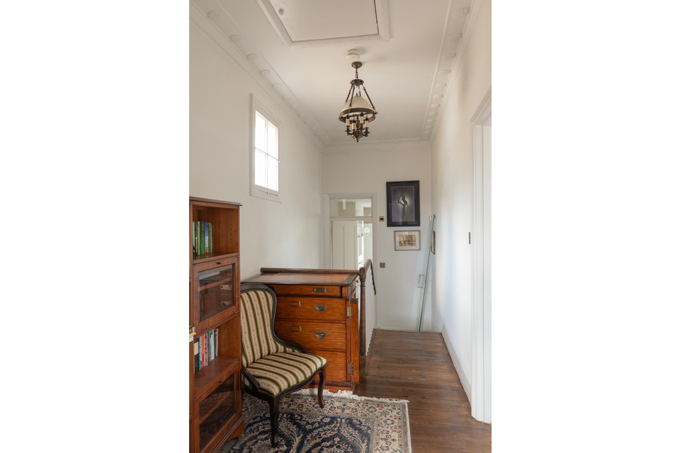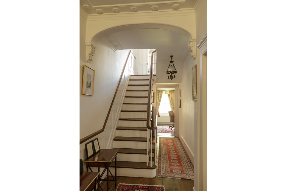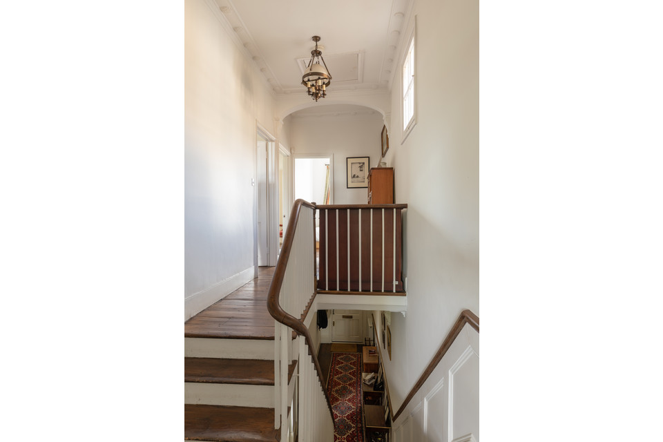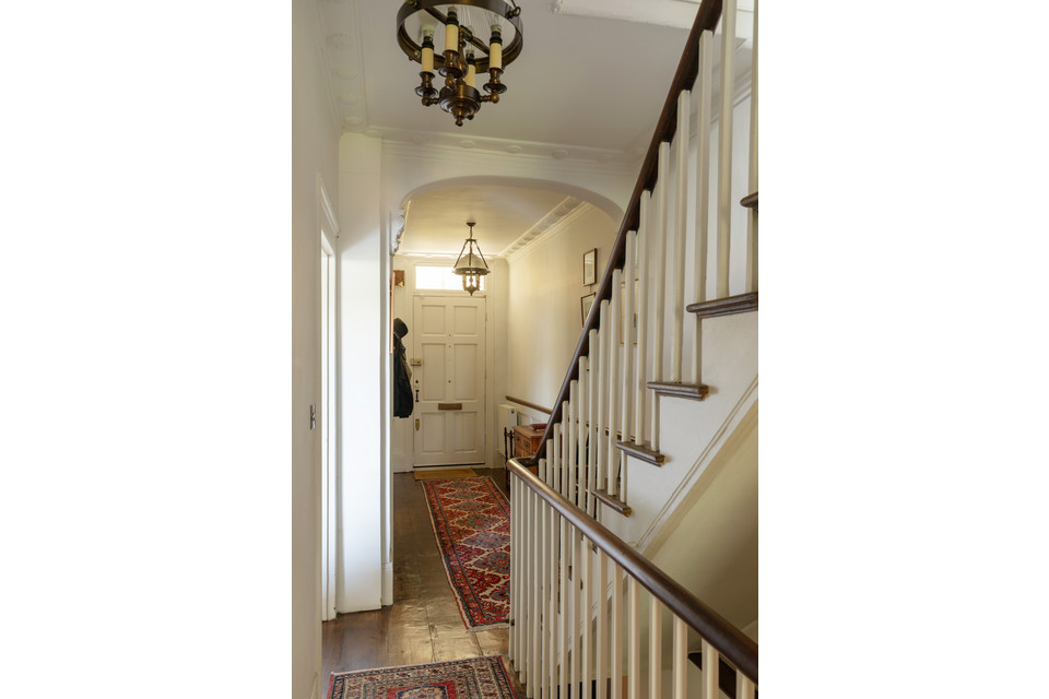 We’ll begin on the raised ground floor. Noting the dishy (listed) railings fronting your front garden area, take stone steps up to the porch and front door (grandeur from the off) and open into the generous and high-ceilinged hall. Stairs lead up ahead.