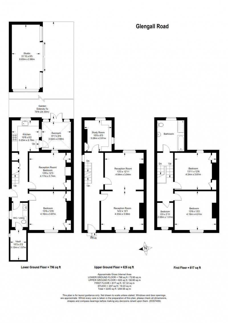 The handsome two-entrance property has loads of rooms, providing welcome flexibility. In current setup, delivered over three floors, you have four bedrooms, three reception rooms, a kitchen, a sunroom and a large study room. A substantial, largely-glazed garden studio of over 200 square feet (with power and water) completes the offering. More good news? The house is being sold without a chain.