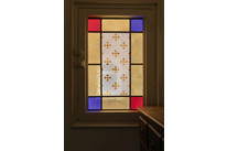 Right off the hall, you have your formal double-reception (there is a door to each). The front room is 14 feet by 13 feet. The rear one is 13 feet by nearly 13 feet. Ornate ceiling roses grace both stylish spaces. The decorative scheme, as throughout, is neutral. Your large sash windows have gorgeous boxwork and original shutters.