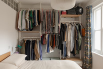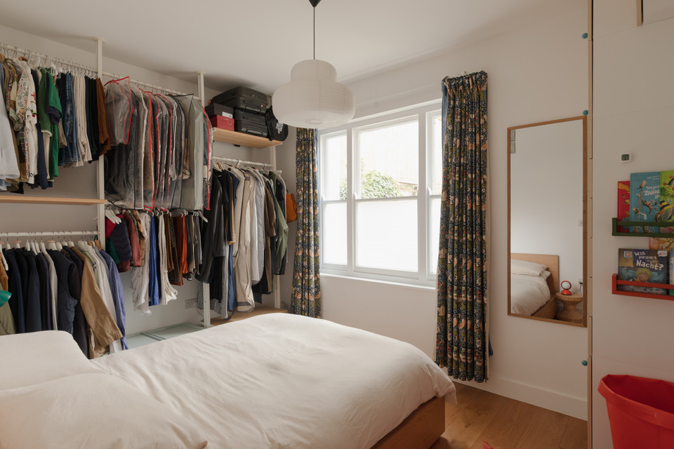 Engineered oak floors flow through to the sash-windowed bedroom, which is set at the front of the flat, and is over 12 feet by over 9 feet. As throughout, walls are fresh and white.