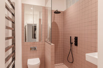 Finally you have your sleek shower room. This has concealed plumbing, a contemporary white basin and lavatory, on-trend matte monochrome fittings, and a heated towel radiator. A tall mirrored cabinet keeps products and toilet tissue tucked away. There is another useful linen/cleaning cupboard next to the bathroom door.