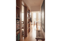Into the neat communal hall and it is up one flight of stairs to your own front door. You open into a smart hall with built-in oak shelving.