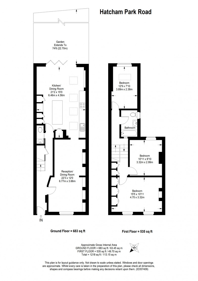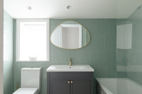 Your principal bedroom across the front of the house is over 15 feet by nearly 11 feet and has a bank of built-in wardrobes. The second double is next door (of over 10 feet by over 9 feet). Your third double bedroom is set at the back of the house with a Velux in the roofline in addition to its double-glazed window onto garden views. Pale carpets grace all the bedrooms for warmth and cosiness.