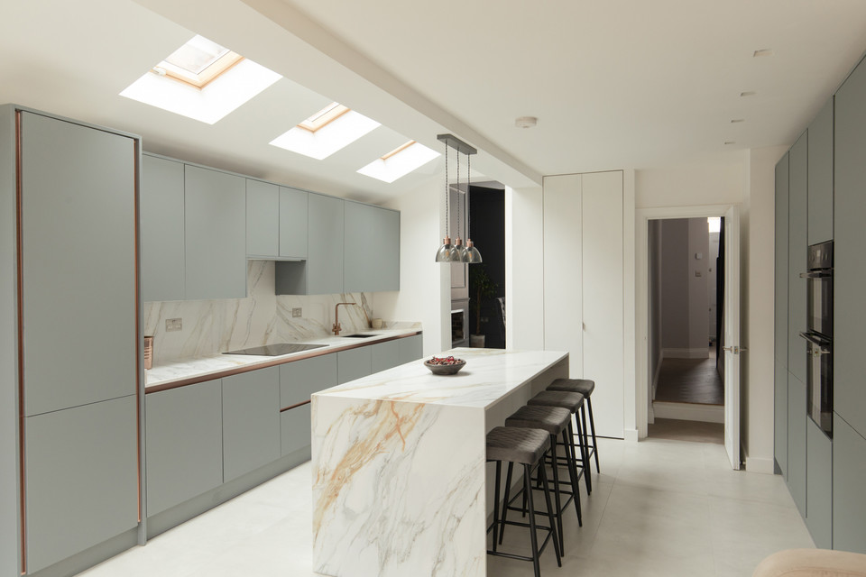We love the open-plan kitchen/reception at the back of the property, where wall-spanning folding doors deliver you to your generous lawned garden of ~75 feet. The southeasterly orientation means you’ll enjoy loads of sun.