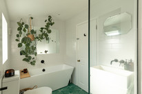 Up the stairs and from the half-landing you have a bedroom to the back of the house, of over 10 feet by over 9. Adjacent is the sleekest of windowed bathrooms (recently done), with independent shower.