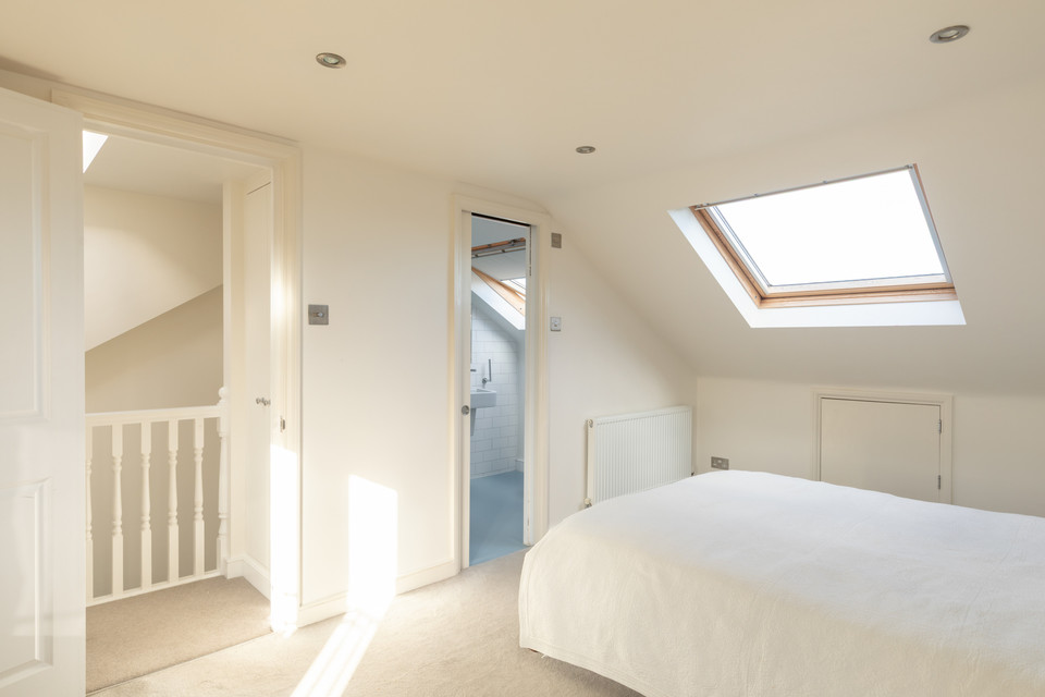 Up again for double number four - this time at over 11 feet by nearly 9, then some more stairs to the loft suite, which is beautifully-done, and gives you a large bedroom of over 17 feet by over 9 feet, and an en suite shower room (with clever sliding door for access). There is easily-accessible eaves storage up here, too.