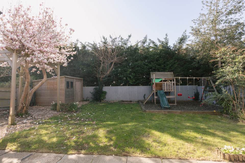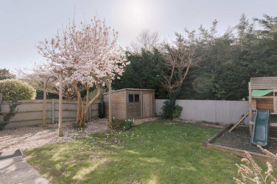 Large, light and lovely detached four/five bedroom, three bathroom (two bathrooms/one shower room) house with a converted integrated garage, off-street parking out front, a beautiful west-facing back garden, and a pretty front lawn to boot. Chain free.