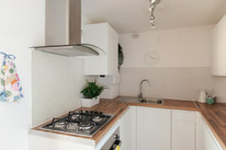 Your sleek fitted U-shaped kitchen (8 feet by 7 feet) rests off the reception room, with new integrated appliances which are included in the sale.