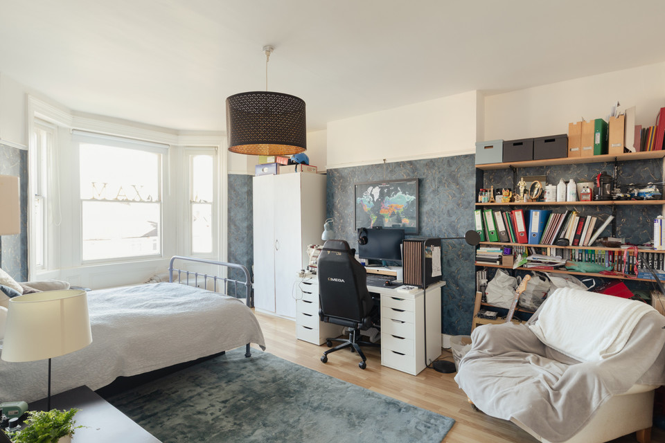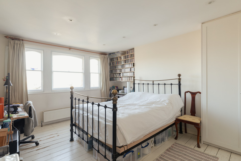Your first floor hosts two dreamy bedrooms. The front bayed one is over 18 feet by nearly 13 feet, and the rear (garden-views here) one is 16 feet by nearly 13 feet. A smart bathroom and independent w.c. complete the floor.