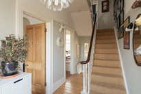 Up a few steps through your front door and you land in a welcoming, windowed hall. You’ll note the pretty bannister/stairwell. Your smart front reception is a dreamy one - of over 18 feet by over 12 feet, with high skirtings, picture rail and coving, and a central wood-burning stove.