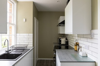 In your own front door and a handy utility cupboard sits ahead. Take the stairs and from the landing, the large kitchen/diner (which is over 24 feet) sits to your right. It is modern in style with slick white units plus open shelving detail, and lots of counter space. At the near end of the kitchen you have a natural dining area with clever inbuilt seating on two walls.