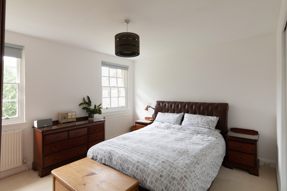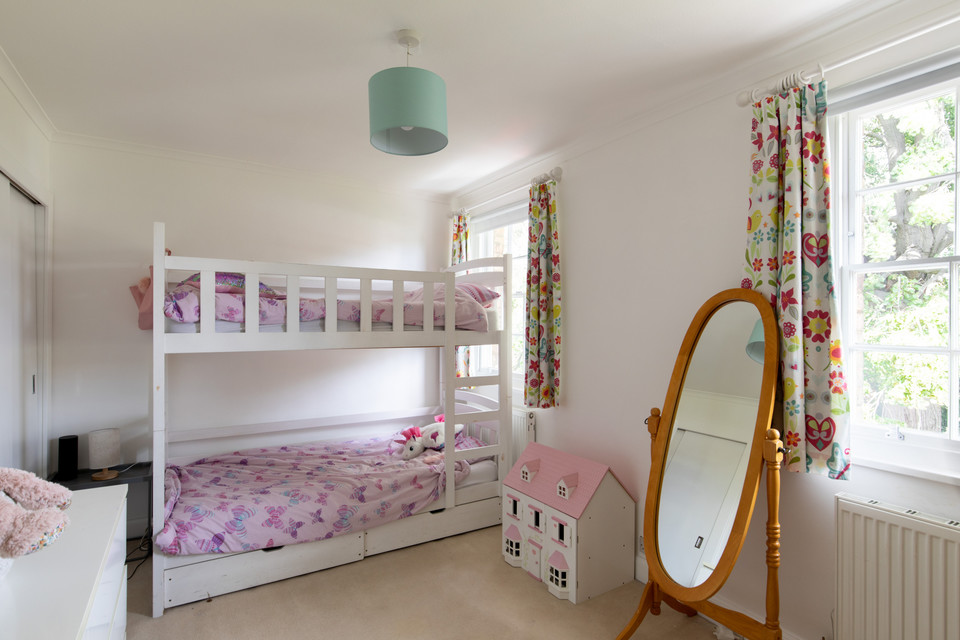 Up to the second floor to find three double bedrooms. All are neutrally decorated with pale carpets. The two largest bedrooms have two windows apiece, plus built-in wardrobes.