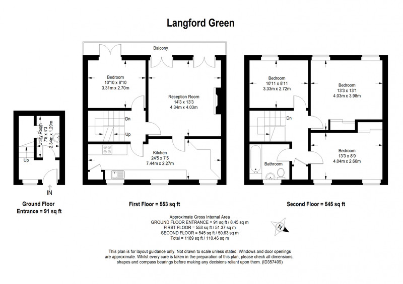 Rarely-available and chain free four double bedroom maisonette over first and second floors (with entrance and utility at ground floor level) of 1189 square feet, with a Freehold-share.