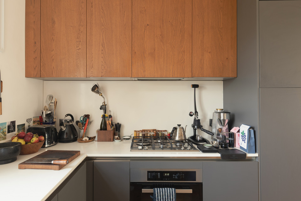 Your sleek eat-in kitchen sits open-plan to the reception. This has modern matt units and high-end integrated appliances (which are included in the sale).