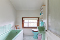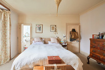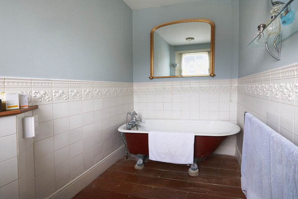 The first floor hosts two bedrooms of the enormous variety (over 16 feet by over 15 feet, and over 15 feet by over 13 feet). Both have built-in closets. The larger, natural master bedroom has a windowed en suite bathroom, the other has its own basin.