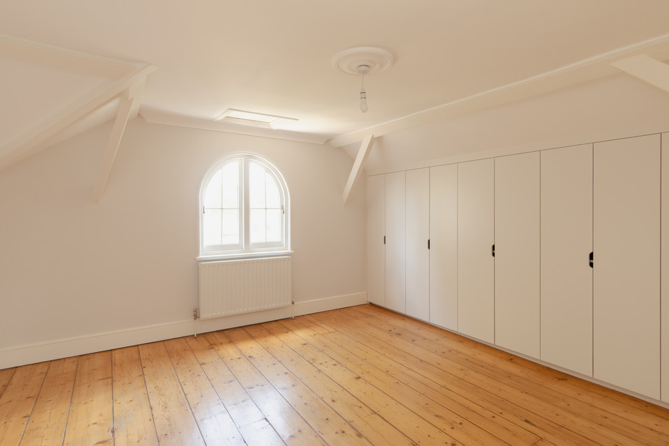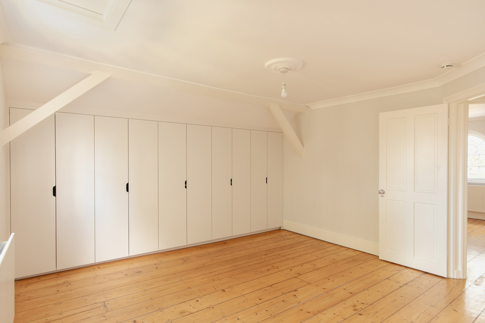 Up to the first floor and you have your principal bedroom to the front of the house. This is 13 feet by nearly 16 feet, with classy built-in wardrobes and a windowed en suite bathroom. Adjacent is another double bedroom. This one is over 13 feet by over 10 feet, with a sash window to garden views.