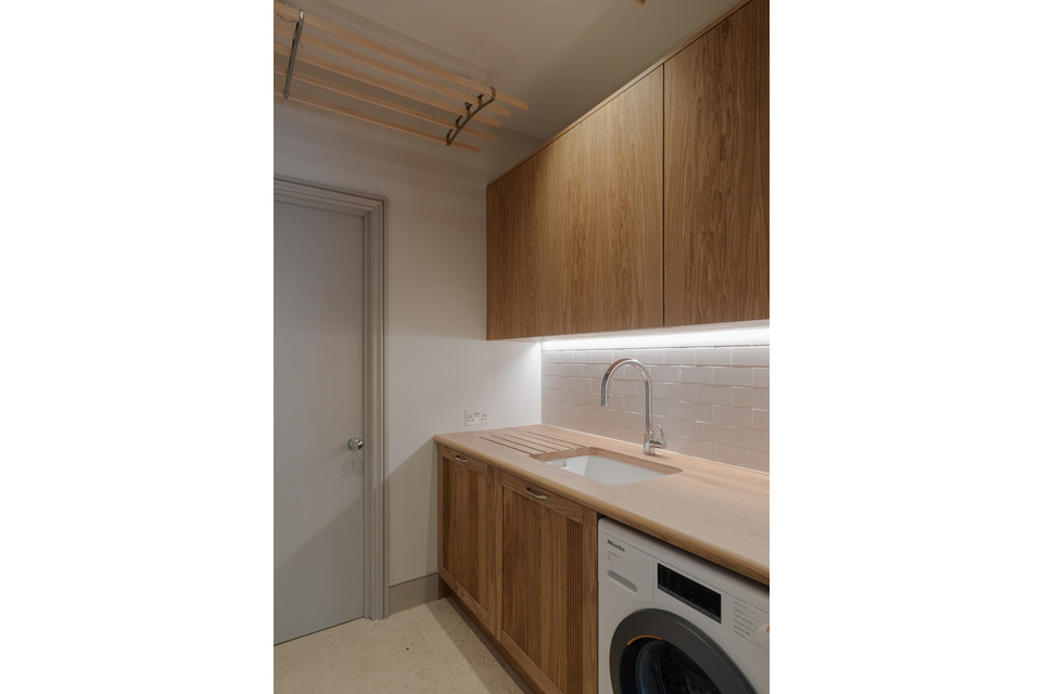 Down the stairs and you have pleasing understairs storage, a plumbed and fully equipped utility/laundry room (cool ‘pocket’ door here) with a store/wine cellar beyond, and a modern mostly-glazed guest bedroom/additional reception room, with sliding doors onto the paved lower section of the garden, and en suite wet room.