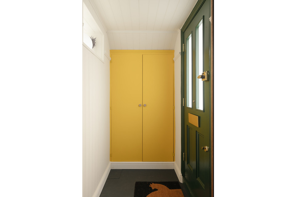 In your own front door and a windowed lobby area has a useful doored store to your right (under the building’s front steps). A second lobby is great for hanging coats and such.