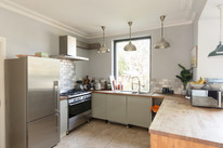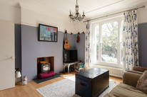 There is just one property below yours and you each have your own front door. Yours is at raised ground floor level - take a few steps to reach it. You open into a welcoming high-ceilinged hall. To your right is a formal sash-windowed front reception/living room, of over 12 feet each way. Welcome features here include wooden floors, a wood-burner, picture rail, coving and rose detail, and a slimline column radiator.